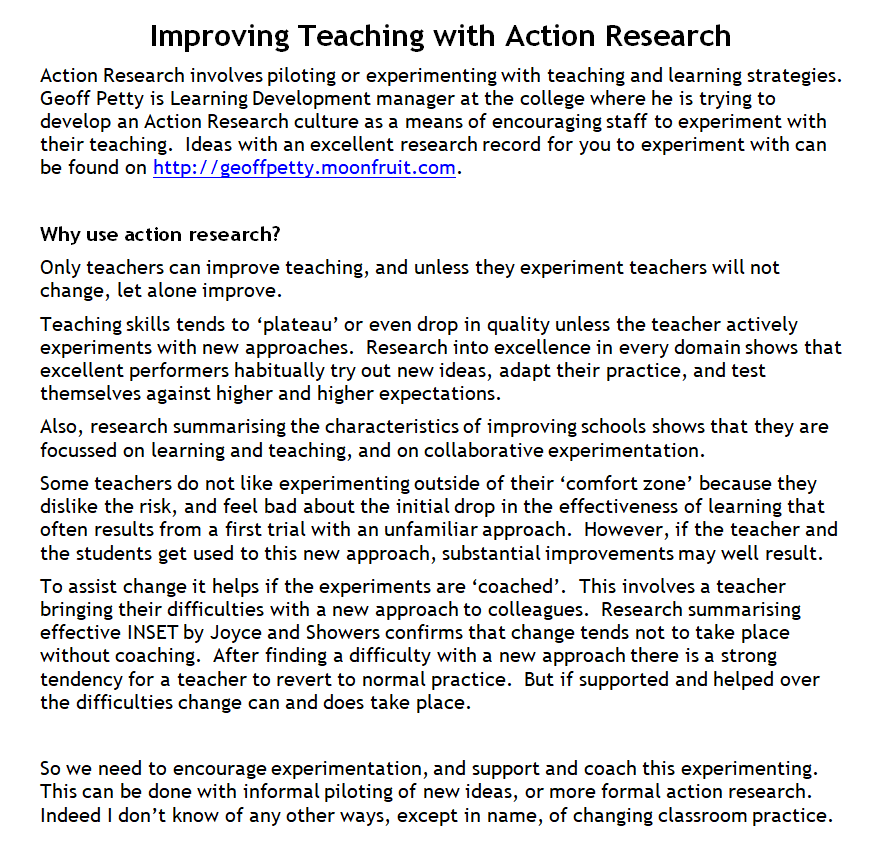 Teaching Improvement Action Research Proposal Sample Doc