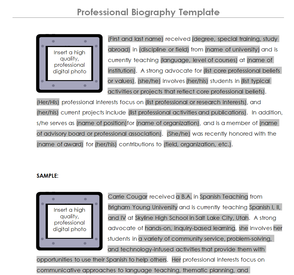 Professional Biography Word Template