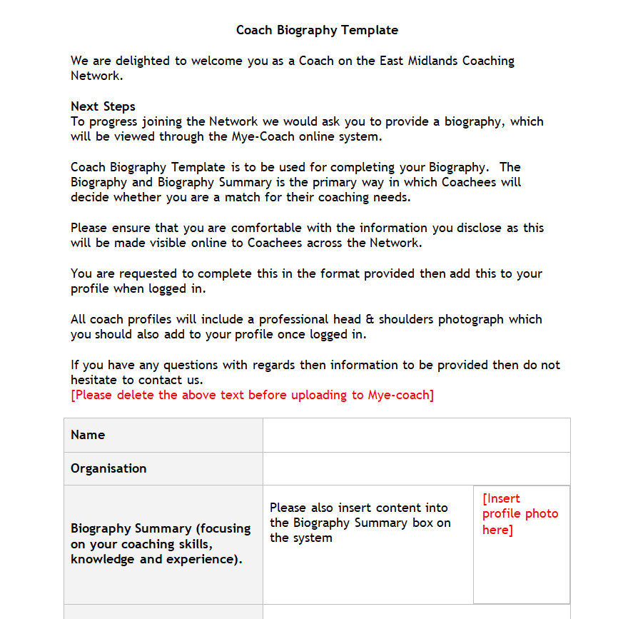 Detailed Coach Biography Sample Doc