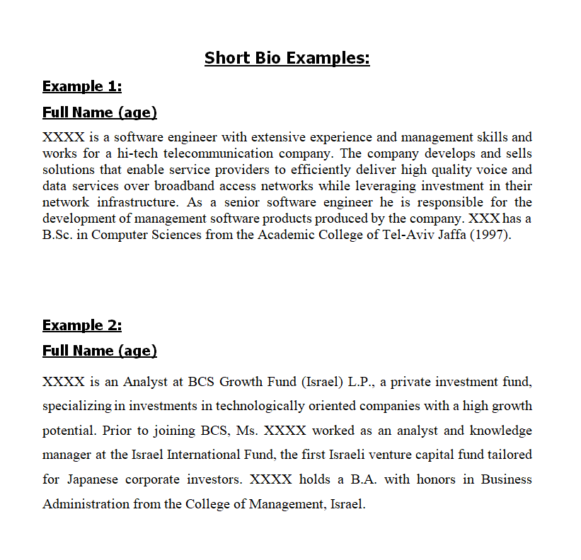 Short Bio Examples
