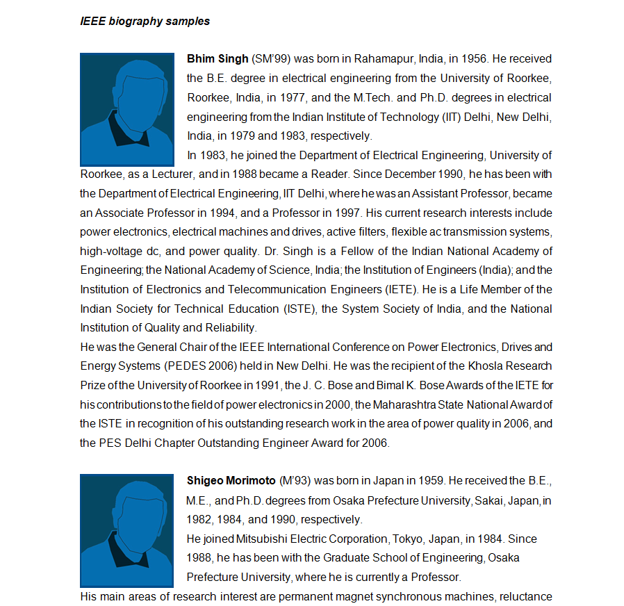Free Editable Short Biography Samples