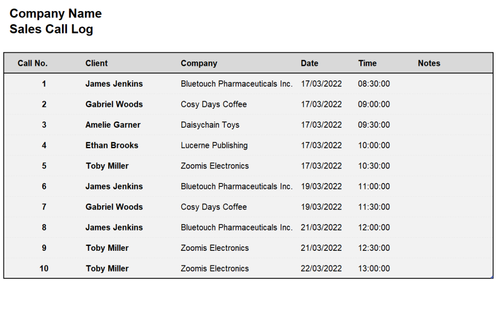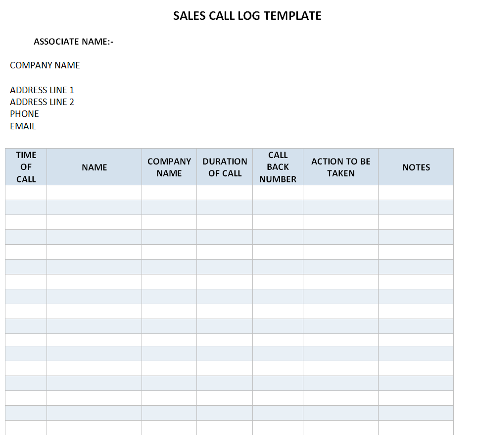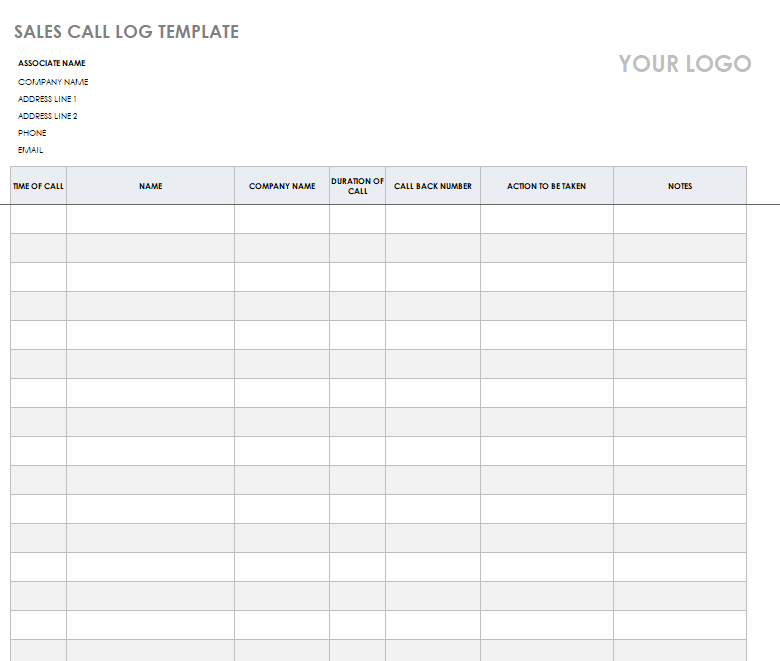 Sales Call Log Template