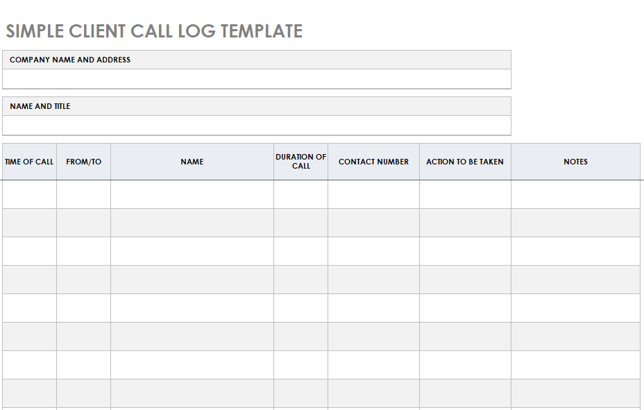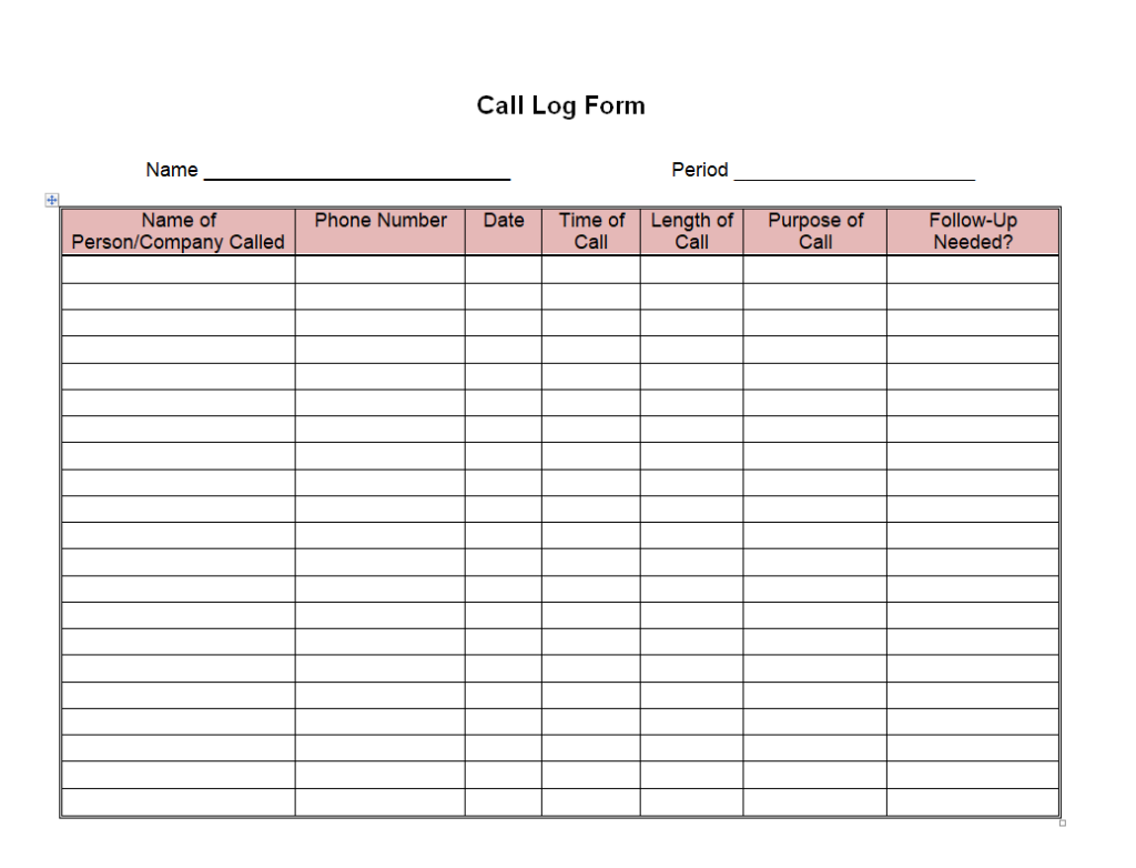 Call log template for personal and professional use