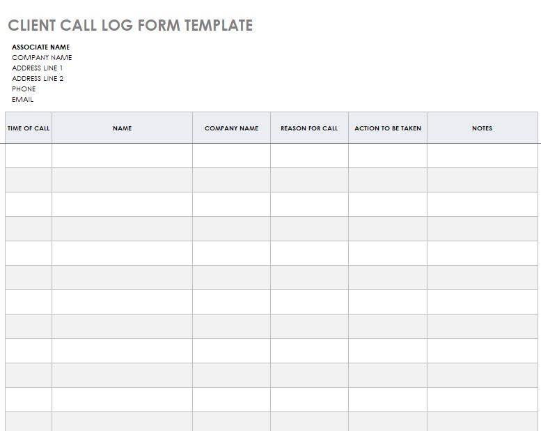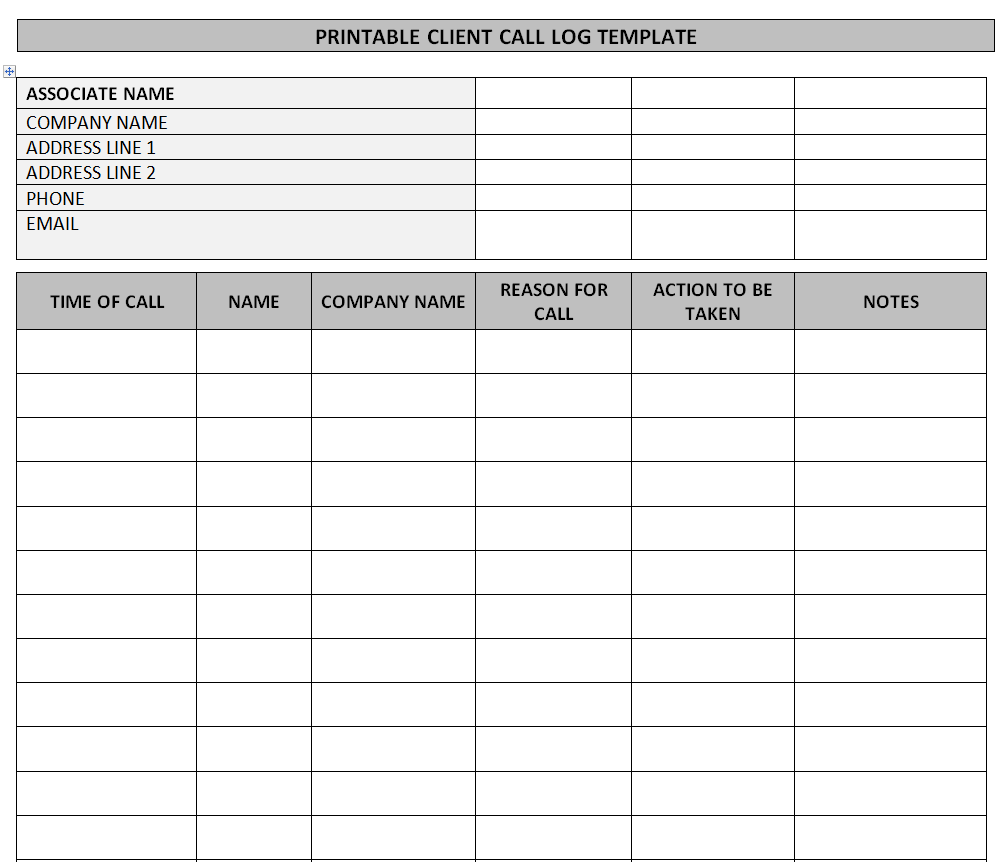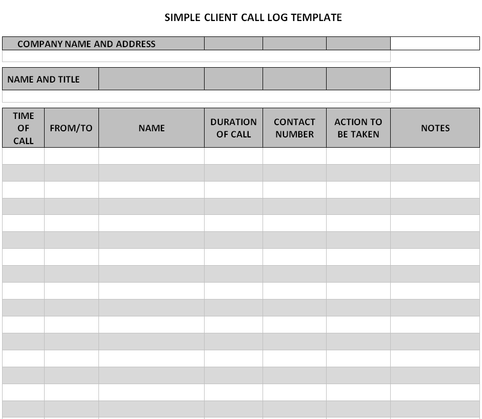 Printable Client Call Log Template