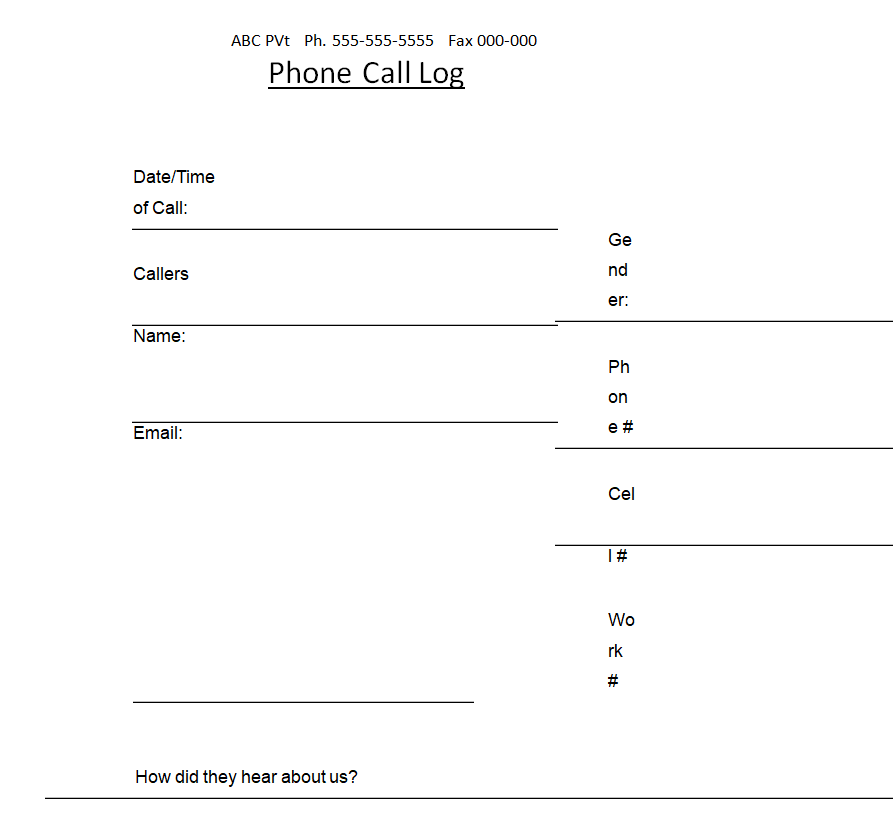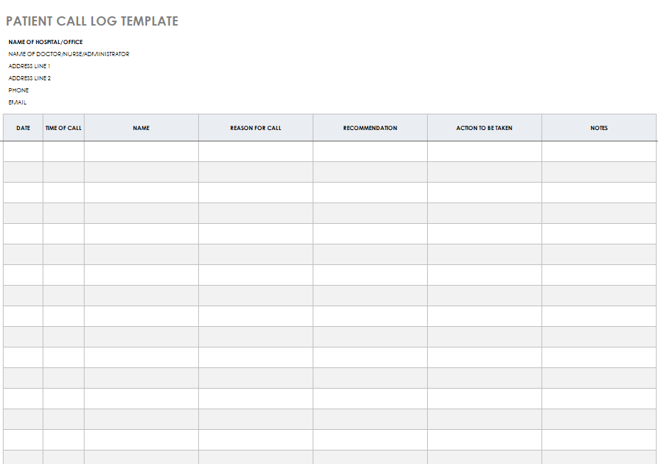 Standard Patient Call Log Template