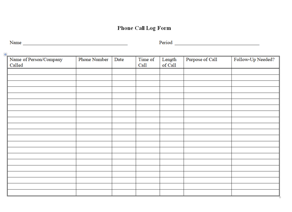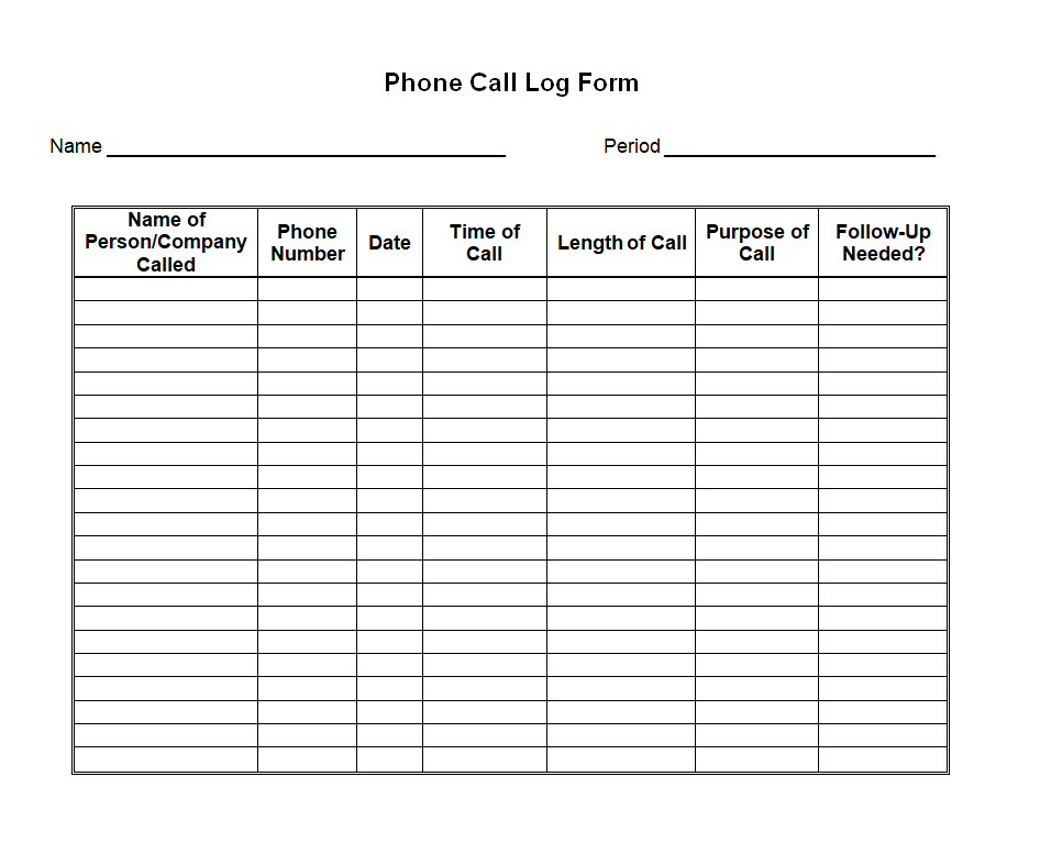 Free Printable Phone Call Log Form Template