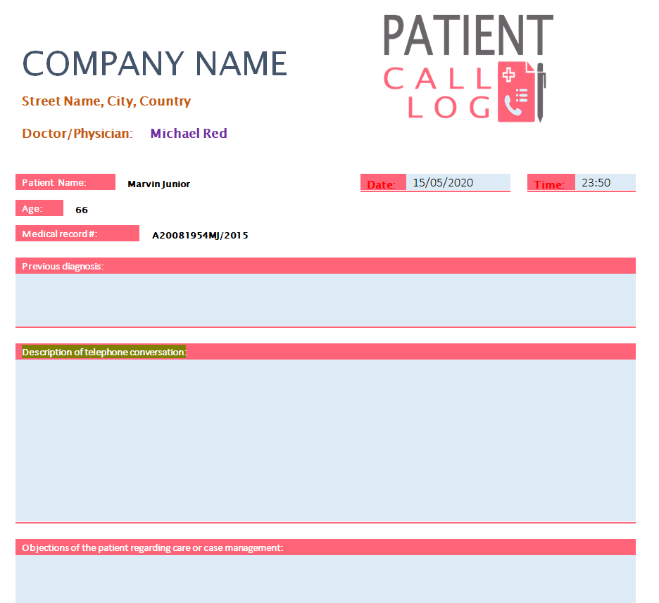 Professional Patient Call Log Sample Doc