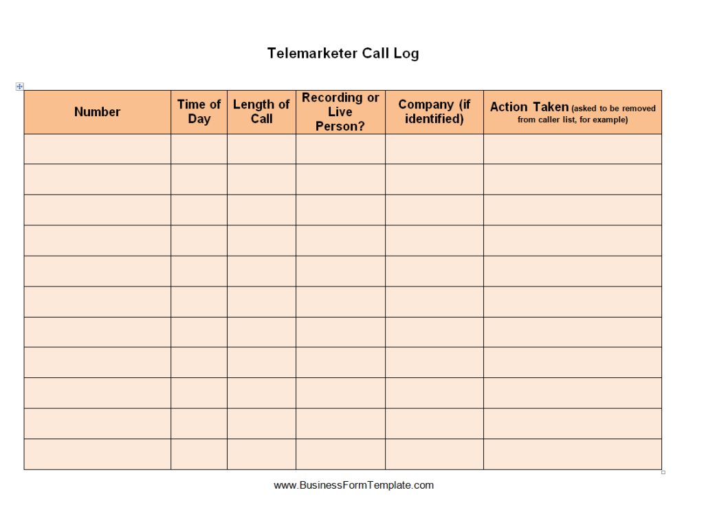 Special Telemarketer Call Log Template Word