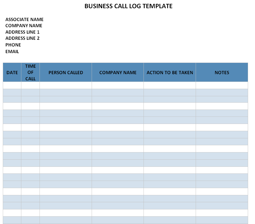 Business Call Log Template