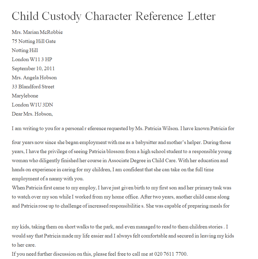 Child Custody Character Reference Letter Template
