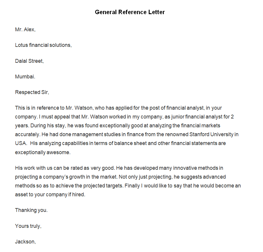 General Character Reference Letter Template