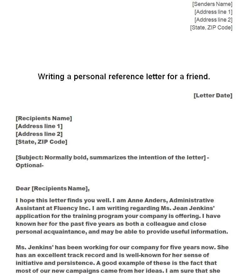 Sample Personal Character Reference Letter for a Friend