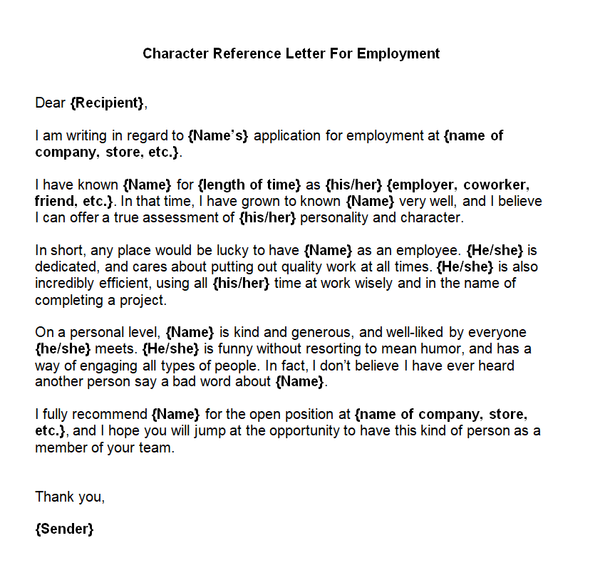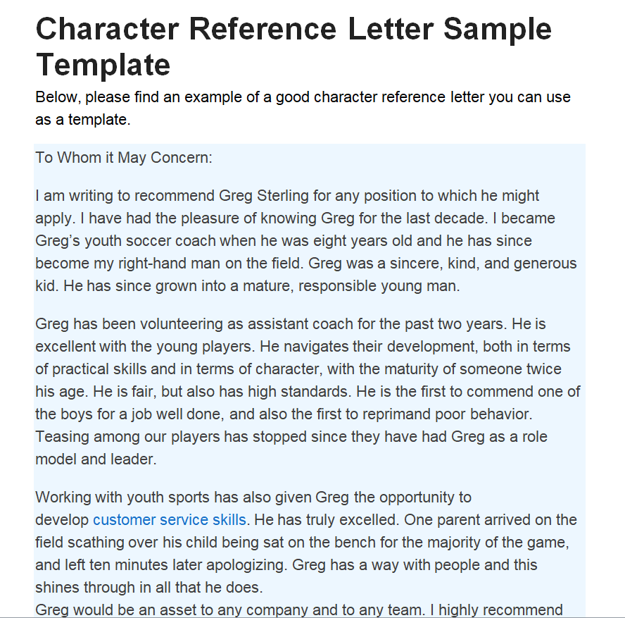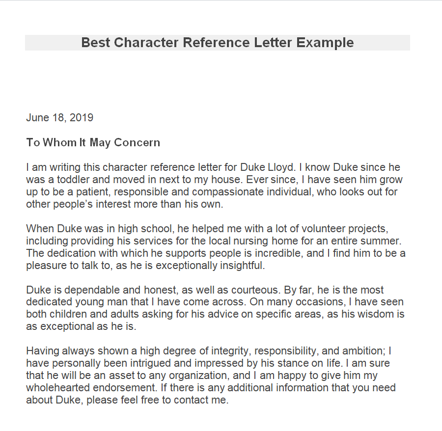 Best Character Reference Letter Example