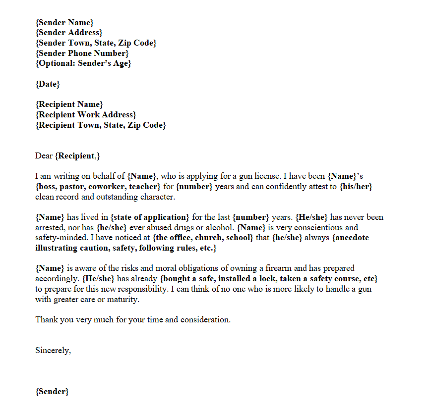 Character Reference Letter Template for Gun License