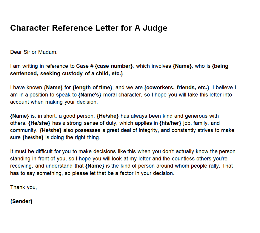 Simple Character Reference Letter Template for a Judge