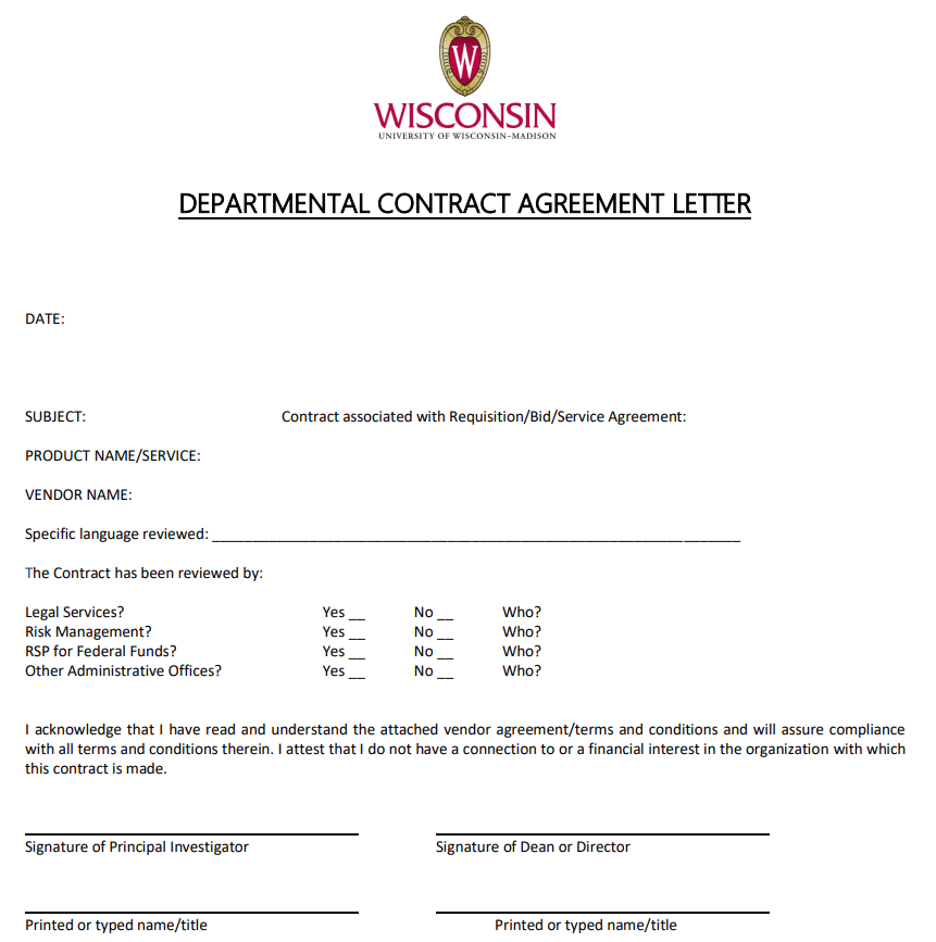 Departmental Contract Agreement Letter Sample