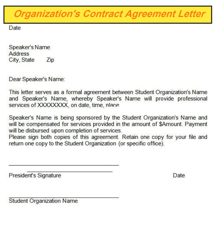 Organization’s Contract Agreement Letter Sample