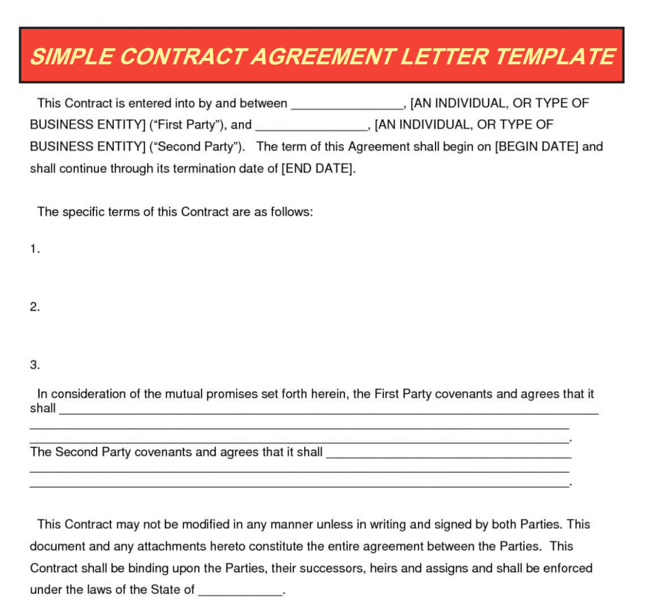 Simple Contract Agreement Letter Format Template
