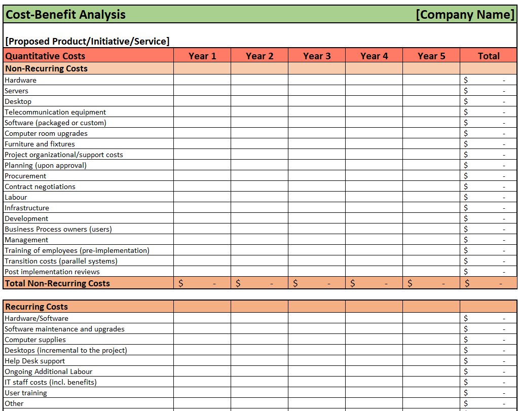 Blank Cost Benefit Analysis Excel Template