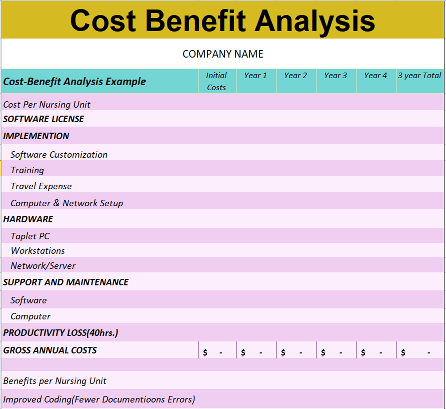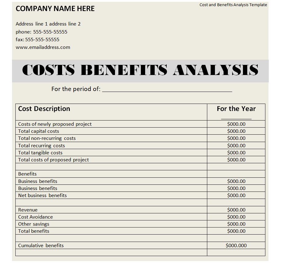 Company’s Cost Benefit Analysis Template