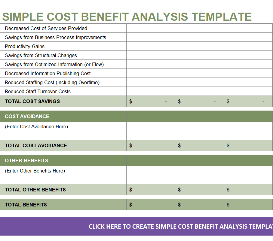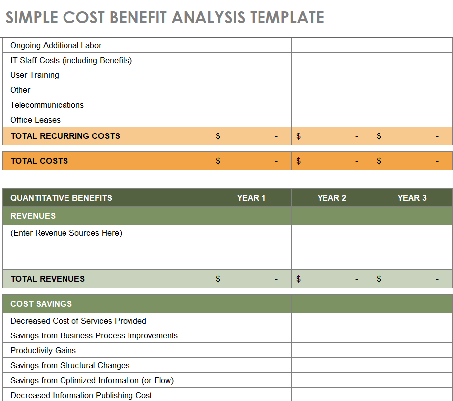 Simple Cost Benefit Analysis Template