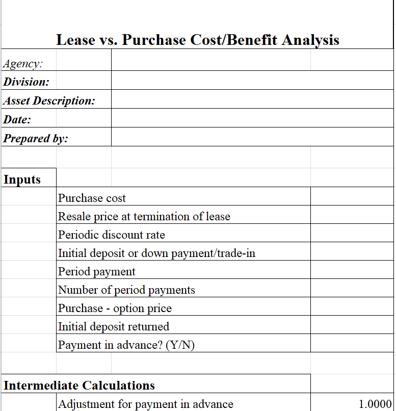 Lease vs Purchase Cost Benefit Analysis Template