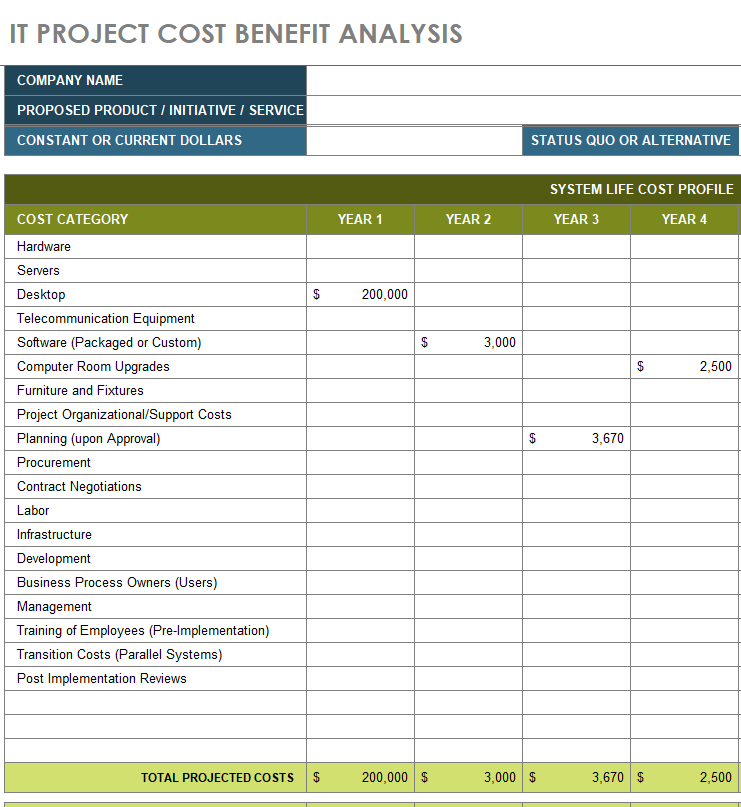 IT Project Cost Benefit Analysis Excel Template