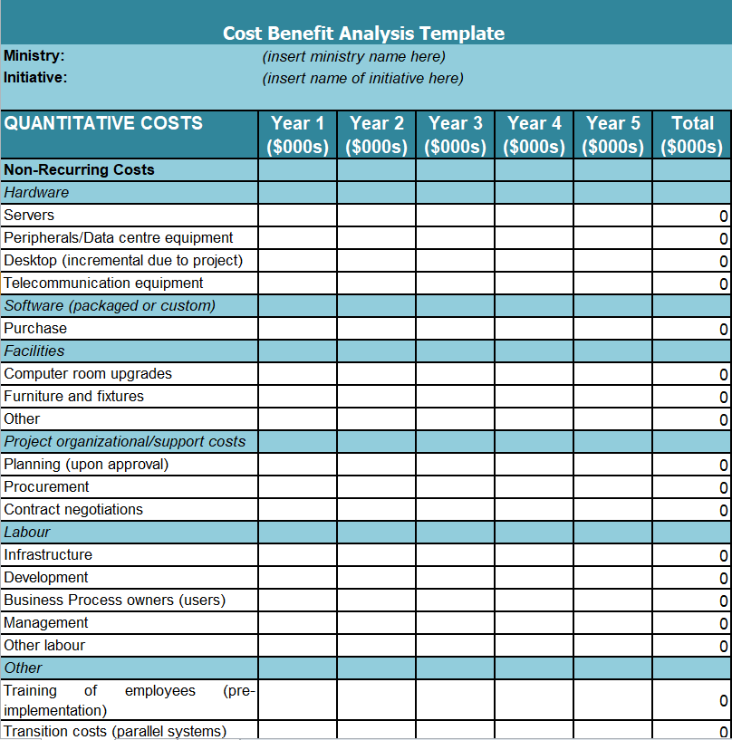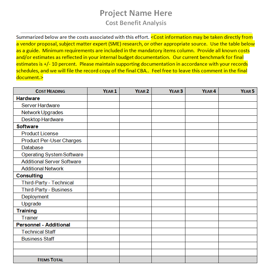 Official Cost Benefit Analysis Template