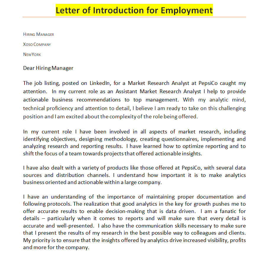 Sample Letter of Introduction for Employment in MS WORD