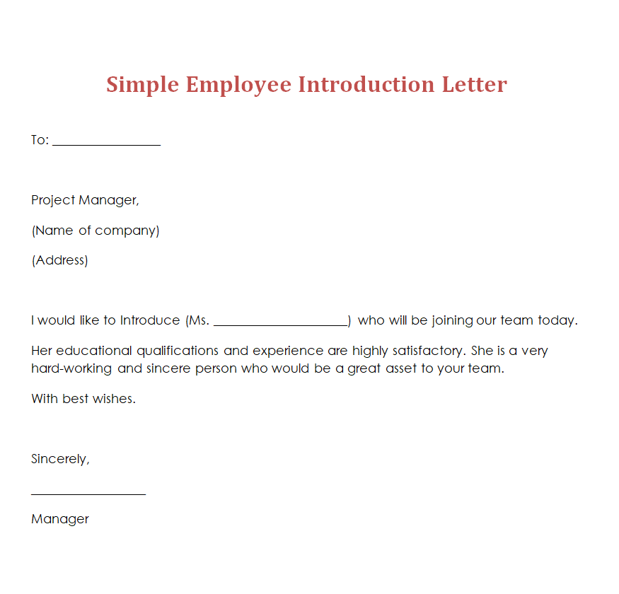 New Employee Letter of Introduction Template Word