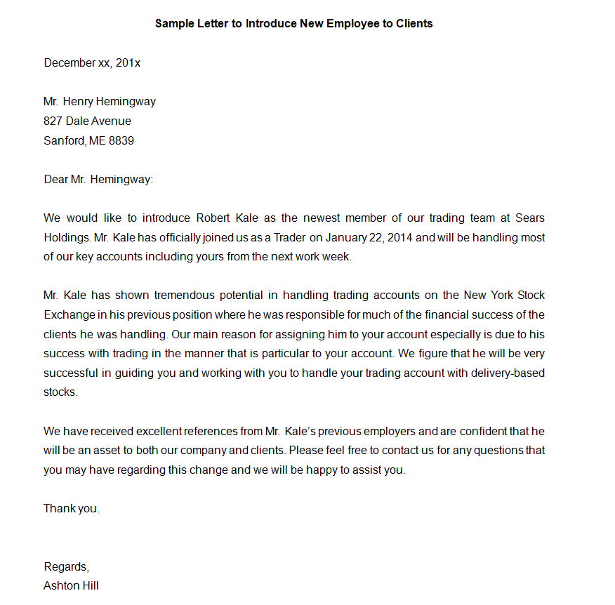 New Employee Introduction Letter Sample to Clients