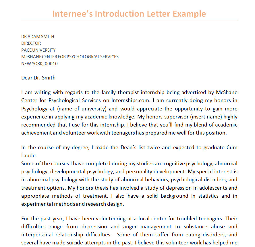 Internee’s Introduction Letter Example