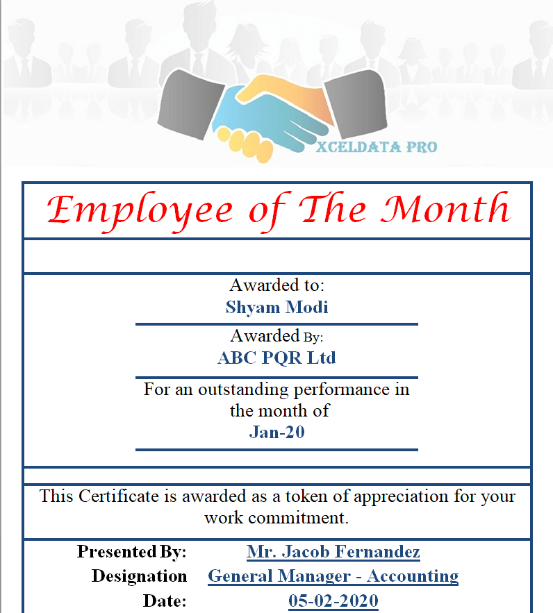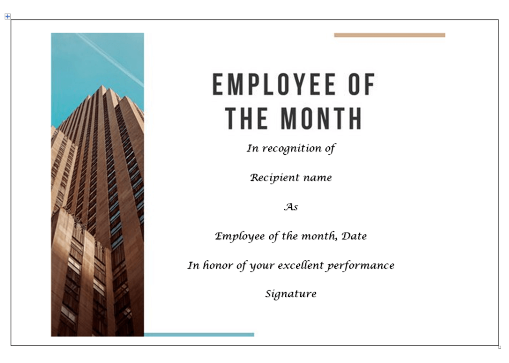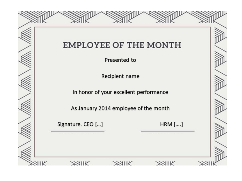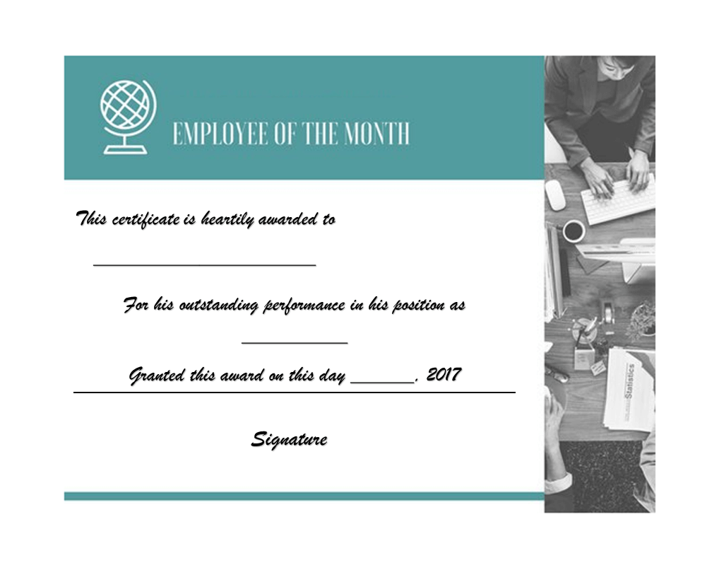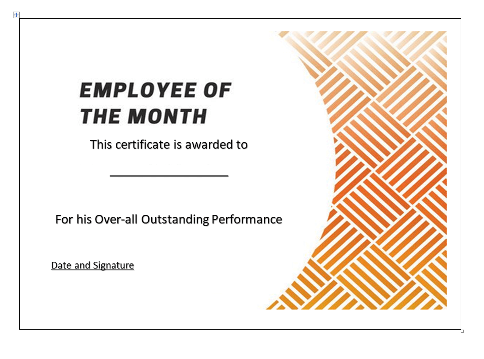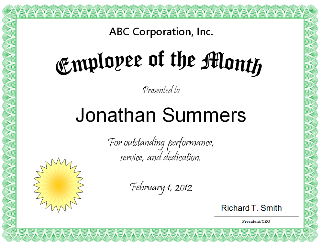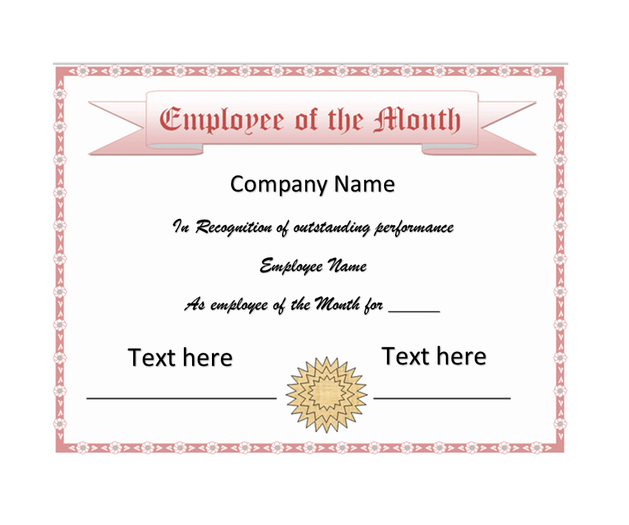 Example Employee of the Month Certificate Word