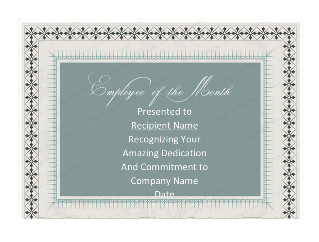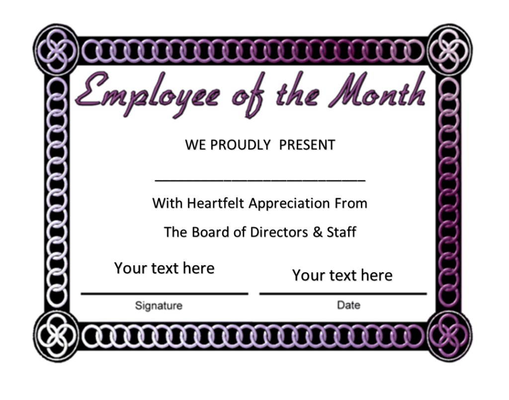 Introducing our exquisite collection of Employee of the Month Certificate Templates, where recognition and appreciation take center stage. Within this article, we proudly present a remarkable collection of easily customizable templates that you can access free of charge. When it comes to honoring exceptional employees, the Employee of the Month Certificate holds great significance. It serves as a symbol of admiration for those individuals who consistently demonstrate outstanding dedication, remarkable skills, and tireless commitment to their work. We have provided this collection of free templates to our users because we understand the importance of recognizing and celebrating the accomplishments of employees. An Employee of the Month program not only boosts morale within the organization but also serves as a powerful motivator for others to strive for excellence. We have curated a remarkable selection of carefully designed Employee of the Month Certificate Templates to simplify the process of creating unique and visually appealing certificates that reflect your organization’s values and appreciation for exceptional performance. Our diverse range of templates caters to various industries and professions, ensuring that you find the perfect design to suit your organization’s brand.