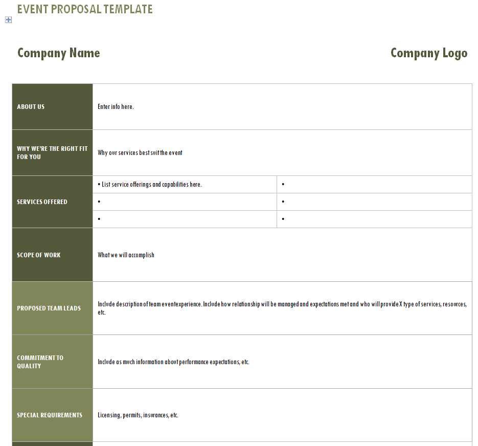 Company’s Event Proposal Template Word