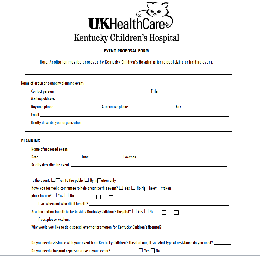 Event Proposal Form Template for a Children’s Hospital