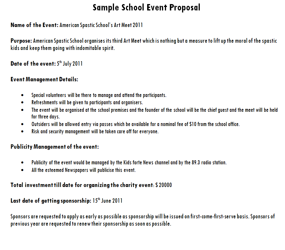 School Event Proposal Word Sample
