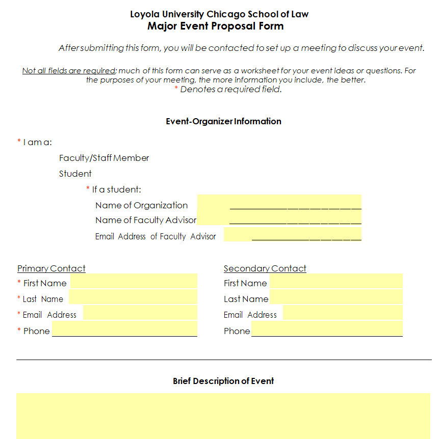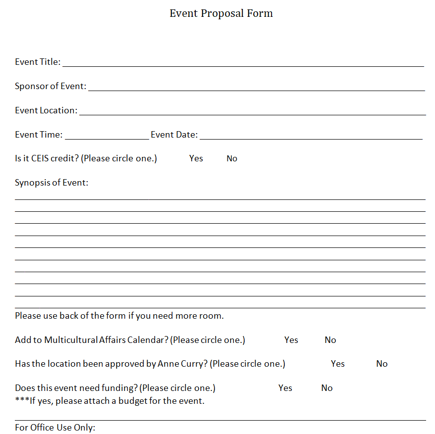 Major Event Proposal Form Sample Doc