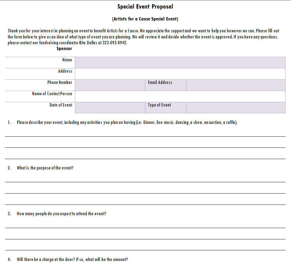 Special Event Proposal Template for a Special Cause
