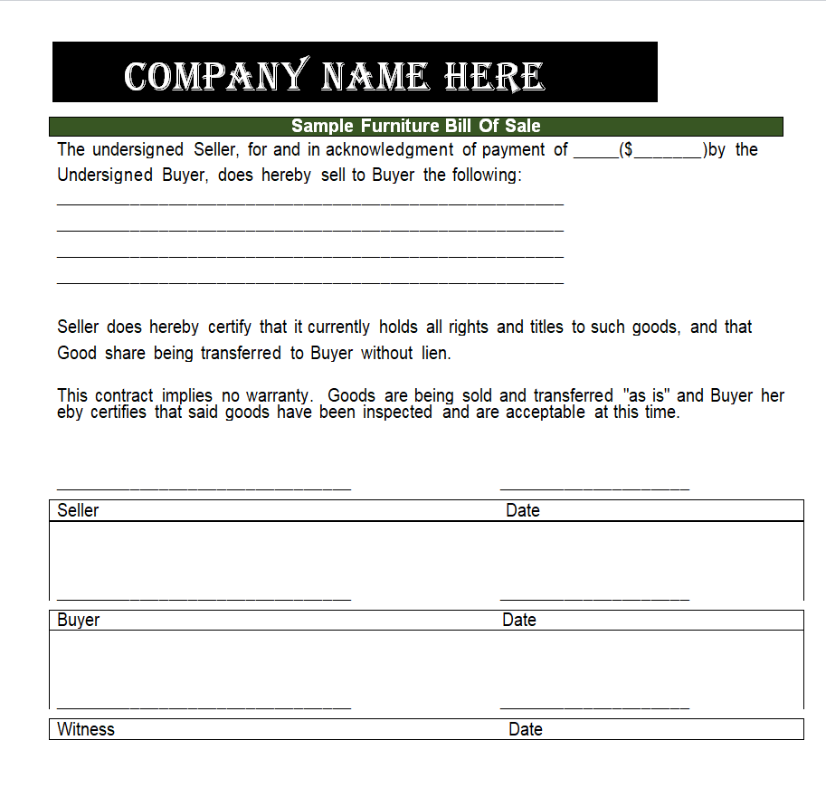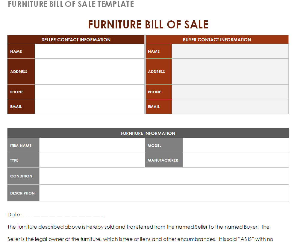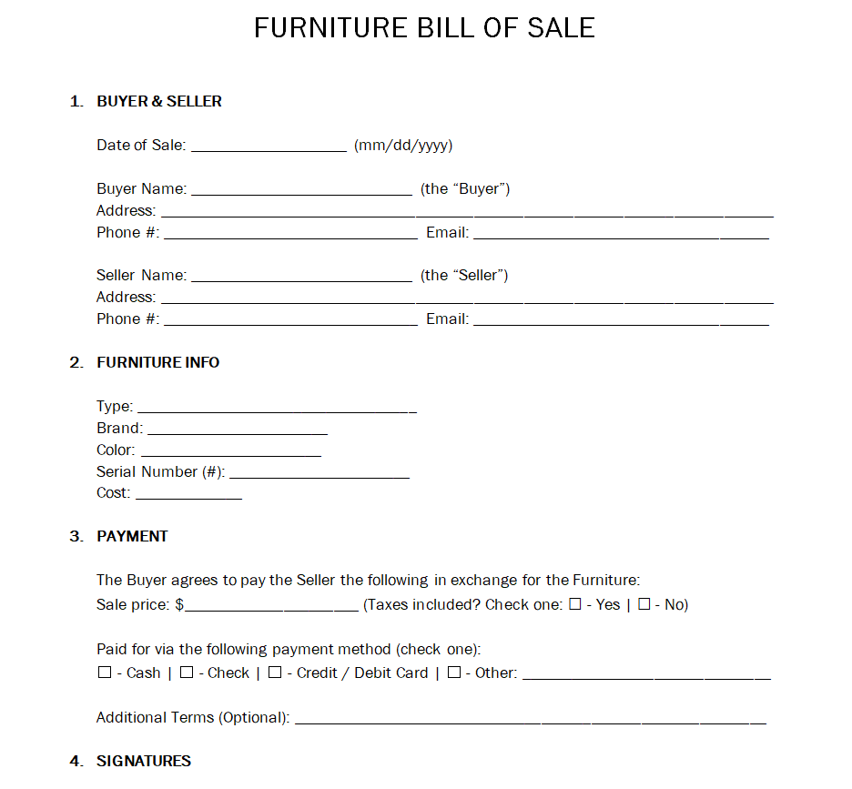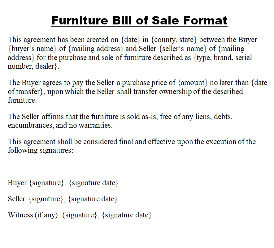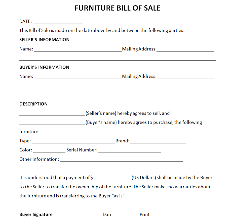 FREE Customizable Furniture Bill of Sale Templates are Given Here
