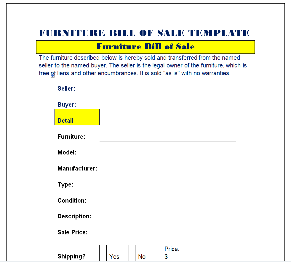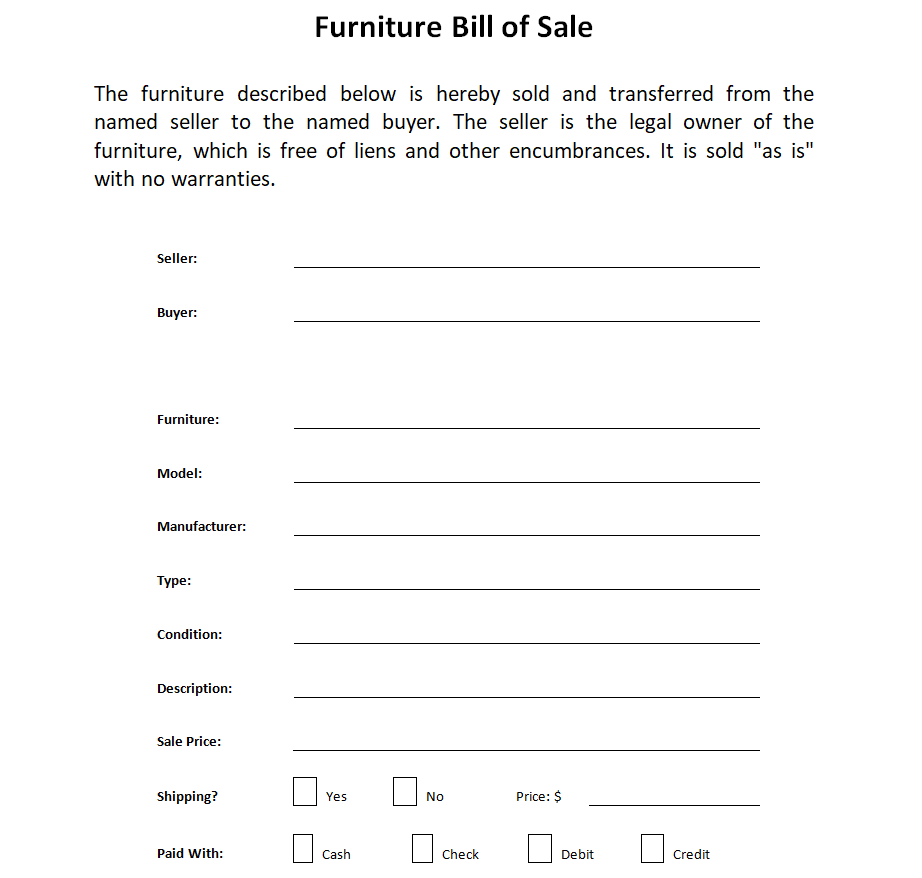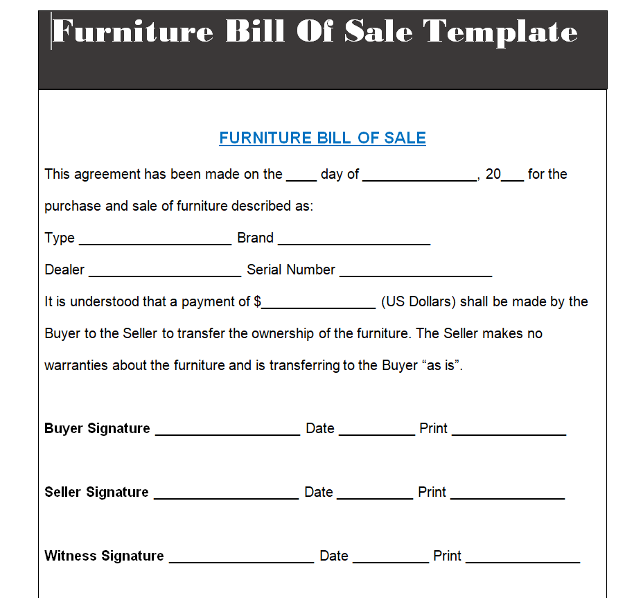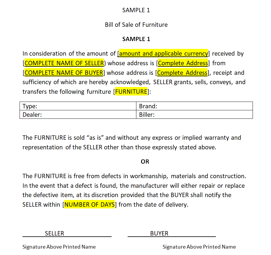 FREE Customizable Furniture Bill of Sale Templates are Given Here