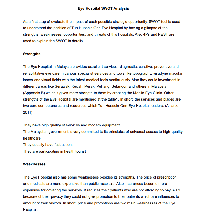 Eye Hospital SWOT Analysis Template PDF