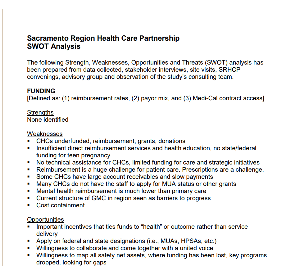 Examples of SWOT Analysis in Healthcare