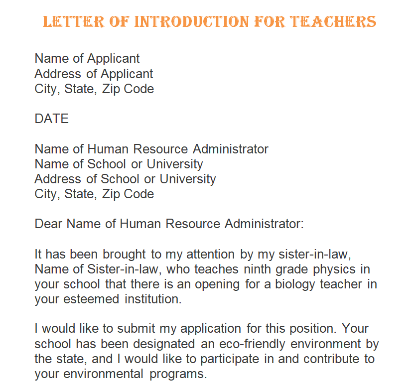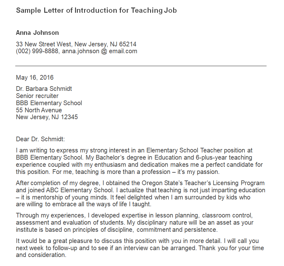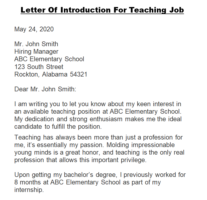 Sample Letter of Introduction for Teaching Job in Doc Format