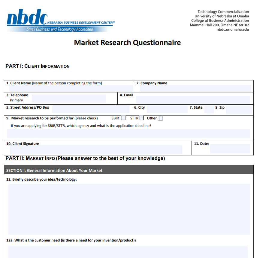 Fillable Market Research Questionnaire Sample