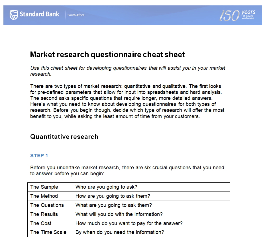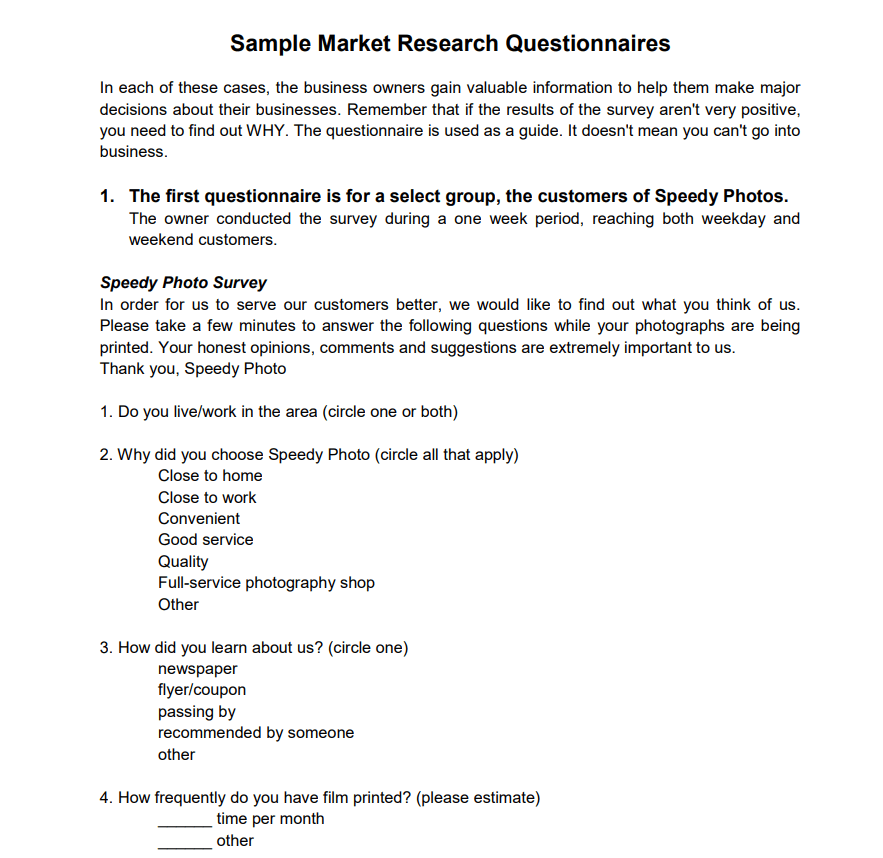 Simple Market Research Questionnaire Sample
