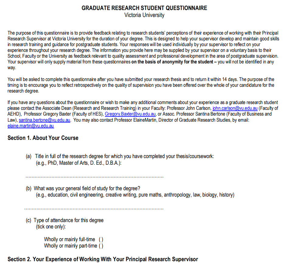 Graduate Research Student Questionnaire Sample PDF