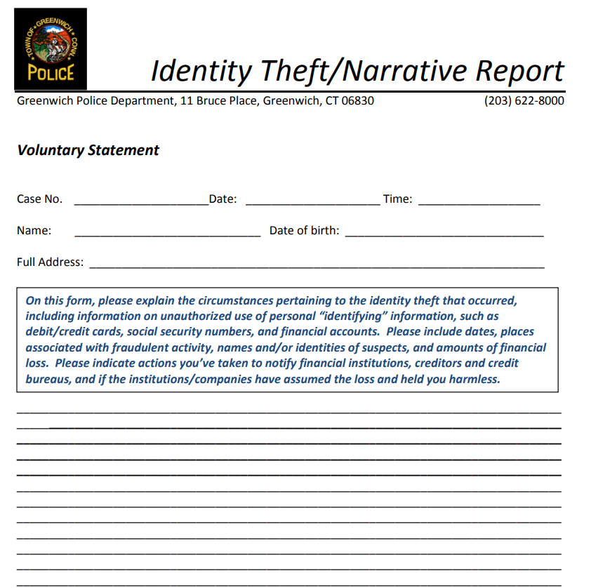 Identity Theft Narrative Report Template