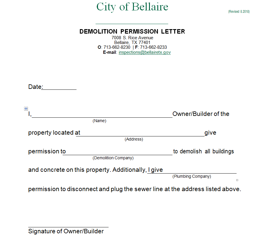 Demolition Permission Letter Template