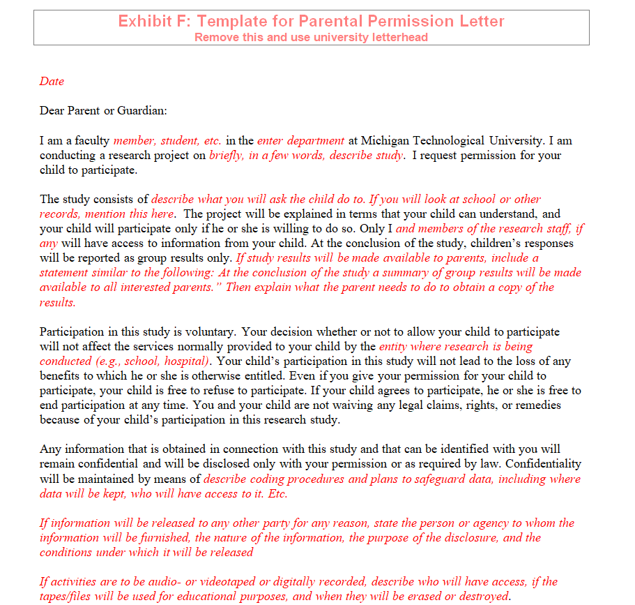 Blank Parental Permission Letter Template Word